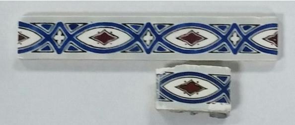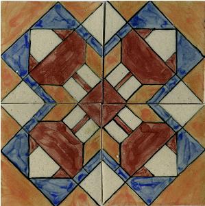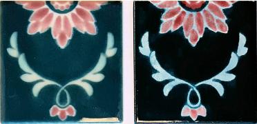 Patterned tiles use "underglazes," which are colors that are formulated differently from glazes and which can be used almost like paint - without running and blending as glazes often do. These are then covered with a clear glaze to provide gloss and protection.