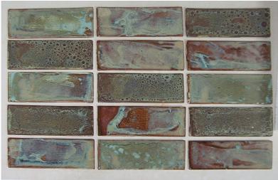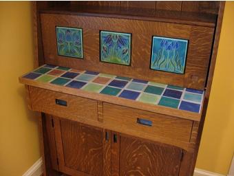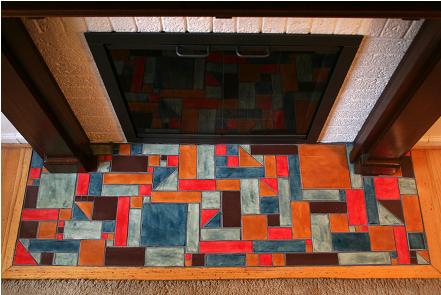 This homeowner knew what he wanted for a hearth design, but needed a tile maker to make a wide assortment of non-standard sizes and shapes in interesting glaze colors.