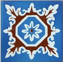 Patterned tiles use "underglazes," which are colors that are formulated differently from glazes and which can be used almost like paint - without running and blending as glazes often do. These are then covered with a clear glaze to provide gloss and protection.